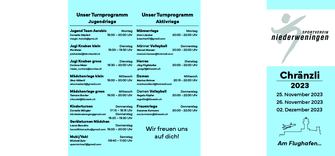Für den Sportverein Niederweningen erstelle ich zweimal jährlich das Vereinsheft und koordiniere den Druck.